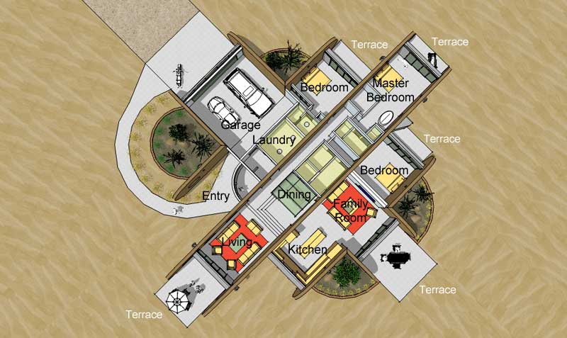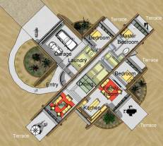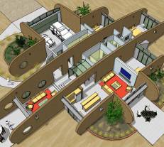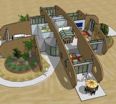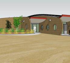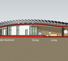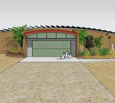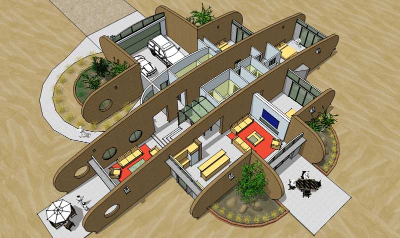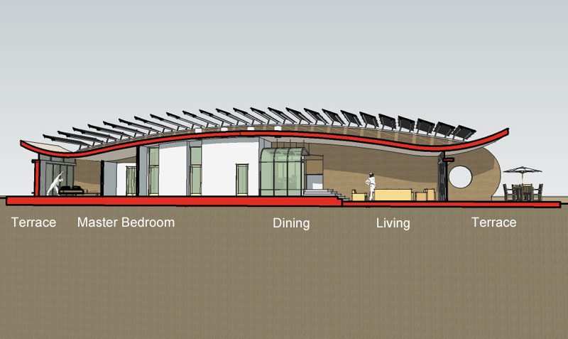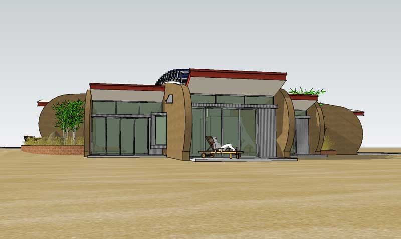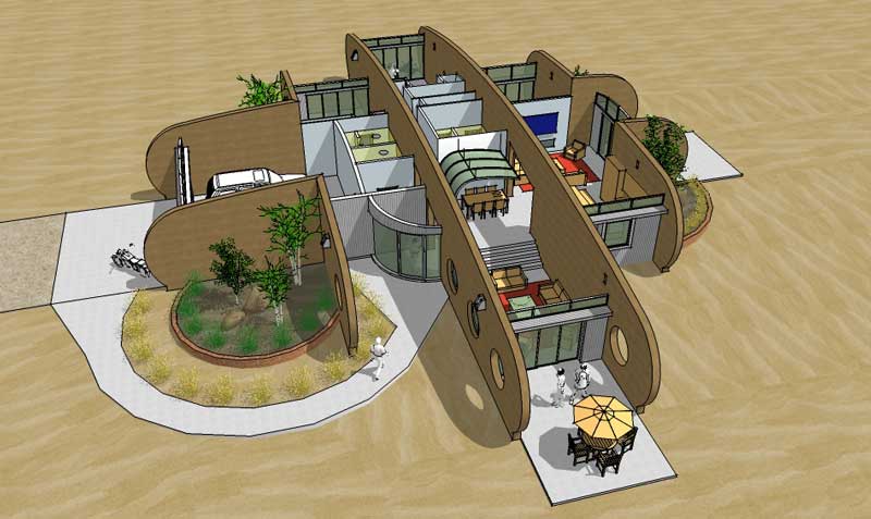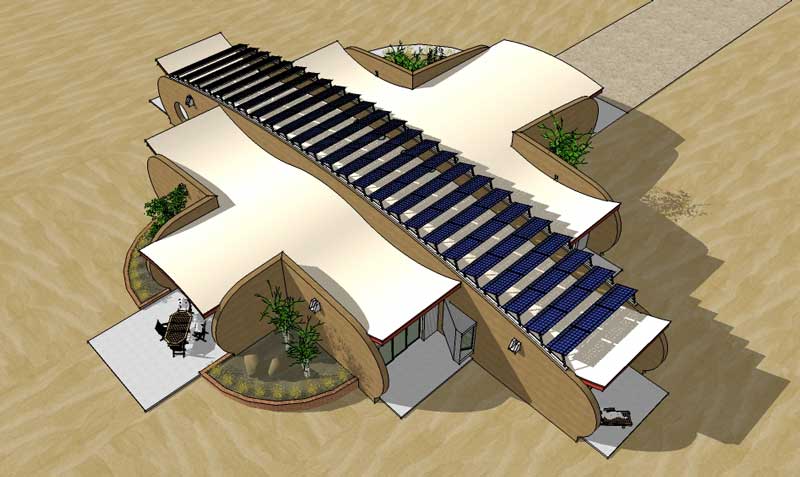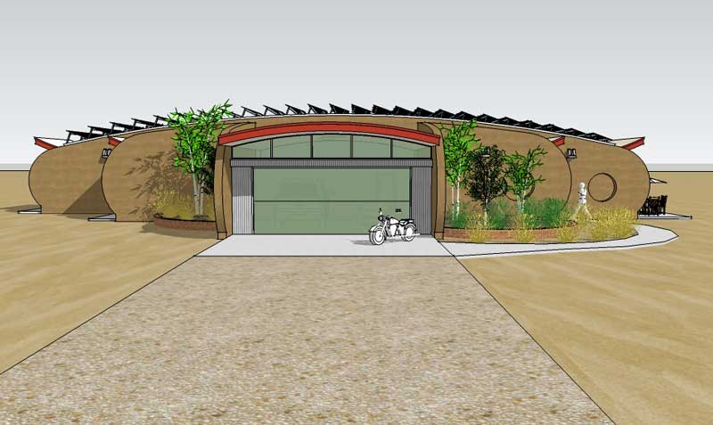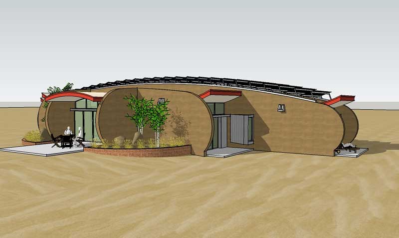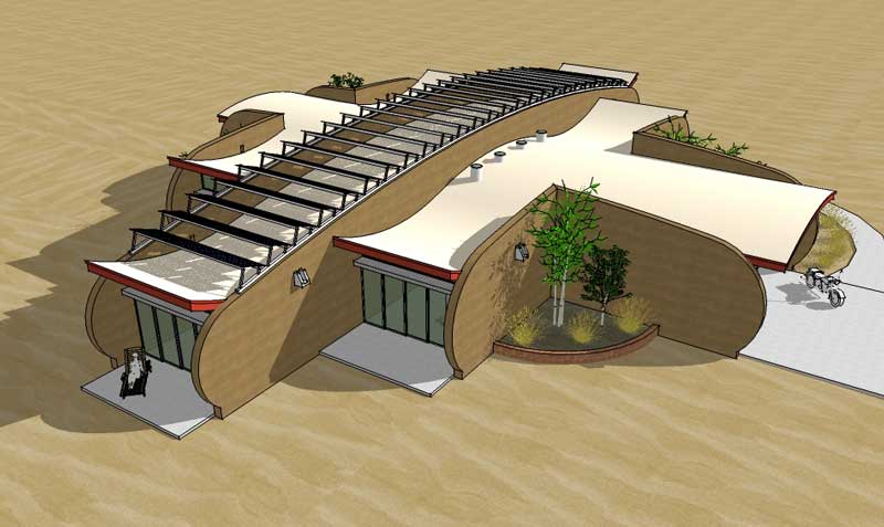 A rammed earth house for the high plains of New Mexico with photovoltaic solar array for off-grid living.